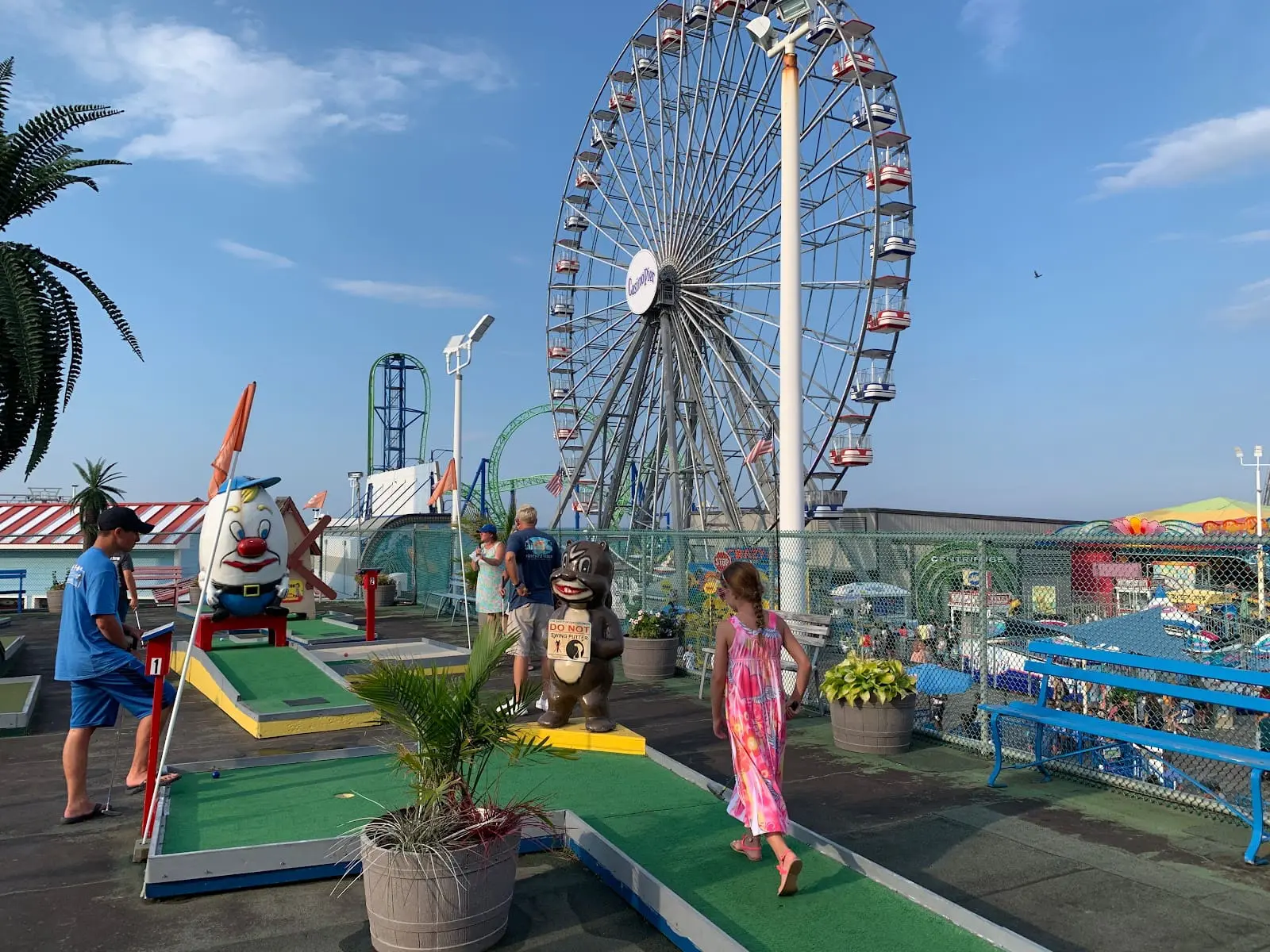 Perched atop a bustling boardwalk in Seaside Heights, Whacky Rooftop Golf offers a unique and entertaining twist on the classic game. With its whimsically designed courses and vibrant, carnival-like atmosphere, it promises fun for players of all ages. As players navigate through challenging obstacles and quirky themed holes, they’re treated to panoramic views of the sparkling Atlantic Ocean and the lively boardwalk below. Whether enjoying a round with family or competing with friends, Whacky Rooftop Golf provides a memorable and laughter-filled experience high above the Jersey Shore. With its blend of excitement and scenic charm, it’s a must-visit destination for those seeking a whimsical adventure by the sea.
